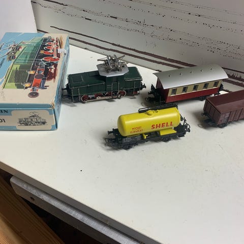 Märklin modelljärnväg tågset med lok, vagnar och räls