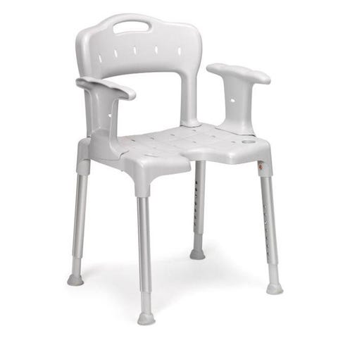 Handikapptoalett med stabila uppfällbara armstöd.