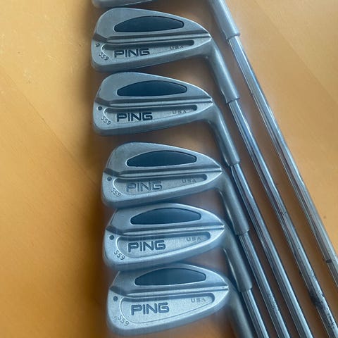 Ping järnklubbor set med flera klubbor, numrerade 4–9 samt pitching wedge enligt bilder. Traditionella stålskaft och grepp i gummi. Klubborna är avsedda för golfspel på bana och träningsområde.