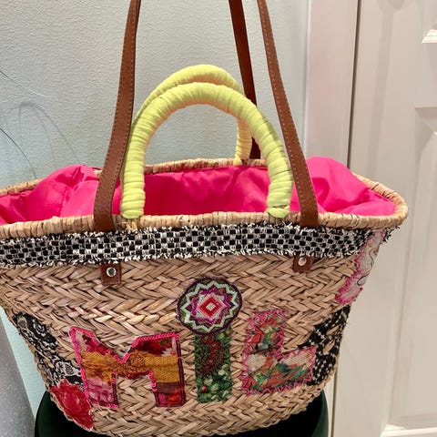 Tygväska för kvinna i ljus textil med tryckt strandmotiv på framsidan. Väskan har dubbla handtag för bärning i handen eller över axeln. Utsidan har en större ficka framtill med knappstängning samt sidofickor för mindre saker. Huvudfacket är rymligt med dragkedja upptill. Passar för vardagsbruk, utflykter eller som strand- och shoppingväska.