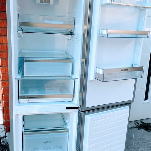 Gorenje kombiskåp kyl och frys i rostfritt utförande. Kyl över och frys nedtill med utdragslådor. Kylskåpet har flera glashyllor, grönsakslåda och dörrhyllor. Frysdelen har två lädor och en lucka. Passar som fristående kombinerat kyl- och frysskåp i kök eller förråd.