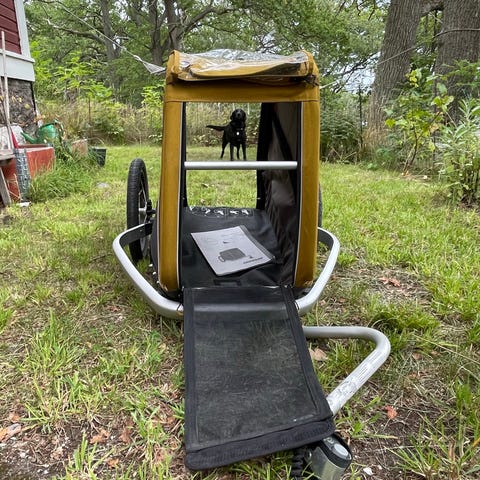Hundvagn för cykel, Cyklorama Rymlig och lättrullad cykelvagn för hund. Sparsamt använd. Hål i ena hörnet, annars i gott skick. Pris 500 kr