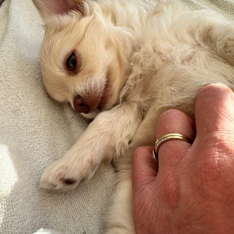 Hon är renrasig långhårig chihuahua tik med stamtavla hos skk.