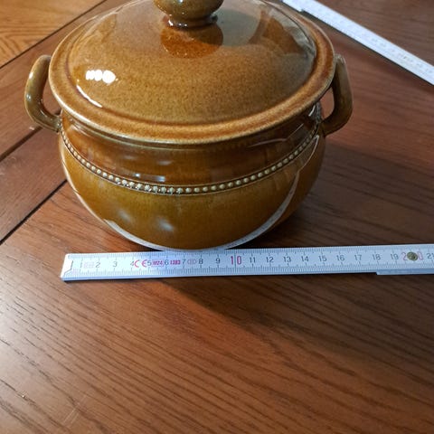 I mycket bra skick, till och med finns etiketterna kvar. Djup i karotten 10.5 cm. Orginal lock
