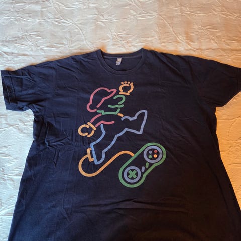 t-shirt för herr i storlek L. Svart färg i bomullstyg med rund halsringning. Framsidan har ett flerfärgat tryck med motivet "Olympic Records". Passar som vardagströja eller till avslappnade tillfällen.