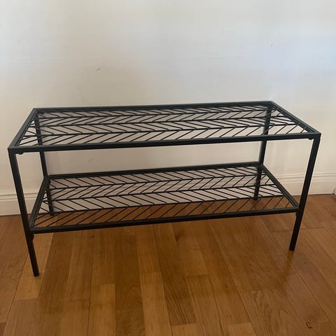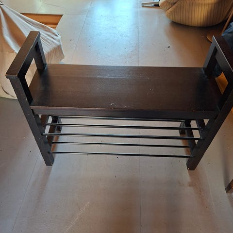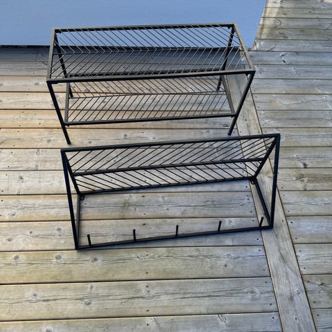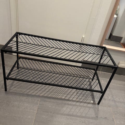 Stabil skohylla i metall, inköpt på Åhlens för något år sedan. Gott bruksskick. Skickas inte.