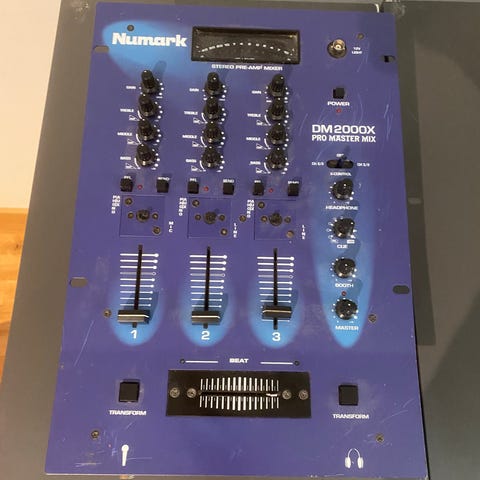 Numark M6 USB DJ-mixer i svart utförande. Mixern har flera kanaler med individuella reglar för volym, gain och EQ, samt crossfader för övergångar mellan kanaler. USB-anslutning gör det möjligt att koppla mixern till dator för ljudöverföring och inspelning. Utrustad med olika in- och utgångar för anslutning av exempelvis skivspelare, CD-spelare, mediaspelare och hörlurar. Lämplig för DJ-bruk i hemmamiljö eller enklare event.