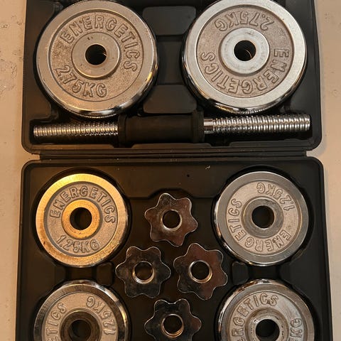 Ett par hantlar på 2 kg vardera. Perfekta för hemmaträning eller att ta med till gymmet. Hantlarna har en bekväm design för ett bra grepp under träningspasset.