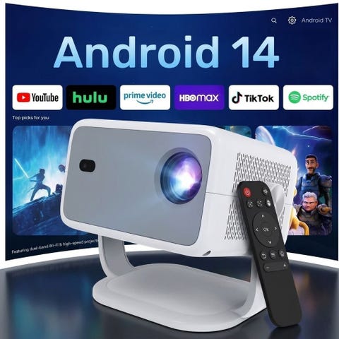Perfekt för film, sport, gaming och streaming - tack vare inbyggt Android 14 kan du enkelt ladda ner appar som Netflix och YouTube direkt i projektorn.