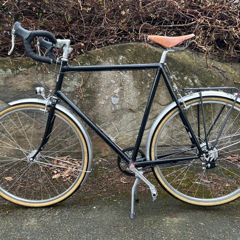 Skeppshult landsvägscykel för unisex med ramstorlek M och 28"/700c-hjul. Cykeln har gul ram, bockstyre med broms- och växelreglage samt pakethållare bak. Utrustad med skärmar och standard landsvägsdäck anpassade för asfalt och längre turer. Passar för pendling och träning på väg för förare som trivs med en mellanstor ram och 28-tums hjul.