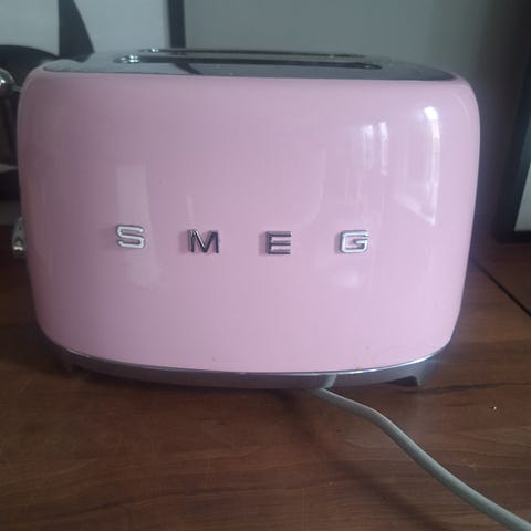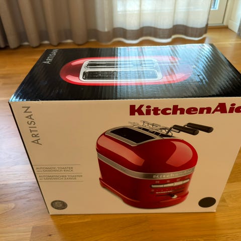 Electrolux brödrost i röd metall med detaljer i rostfritt stål. Utrustad med elsladd och vanlig stickkontakt. Passar för rostning av brödskivor i kök och hushållsmiljö. Finns i Visby.