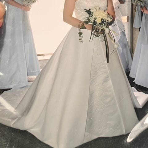 Brudklänning inklusive underkjol i fint skick. Har hängt en tid så rekommenderar kemtvätt eller handtvätt.