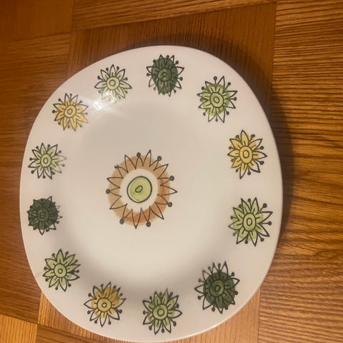 Söt assiett med blommor i keramik från Ekeby. Perfekt inför sommaren. Diameter ca 18 cm. Hel men med några små märken. Se bilder för egen bedömning och hör av dig om du har frågor.