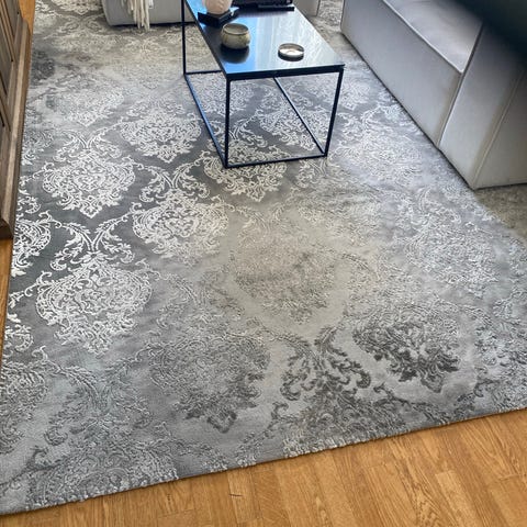 På ett område (se bild) är mattan tillplattad och sliten. Är området som varit nedanför soffan, där man haft fötterna.