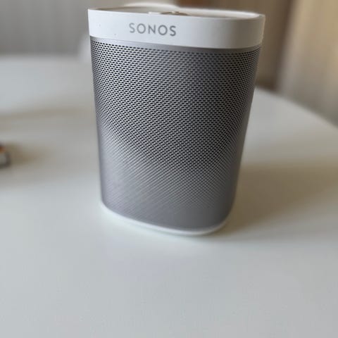 Sonos Play:5 högtalare i vit färg. Trådlös nätverkshögtalare för uppspelning via Sonos-systemet. På baksidan finns nätverksport och strömanslutning. Högtalaren har reglage för volym och uppspelning på ovansidan. Nätkabel ingår i annonsen.