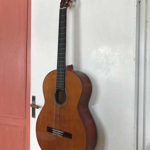 Cataluña akustisk gitarr i naturträutförande. Klassisk modell med nylonsträngar, hel träkropp och rosett runt ljudhålet. Gitarren har traditionell hals med greppbräda i mörkt trä och mekanik med öppna stämskruvar. Lätt fodrat gitarrfodral ingår på köpet (dock trasig dragkedja)