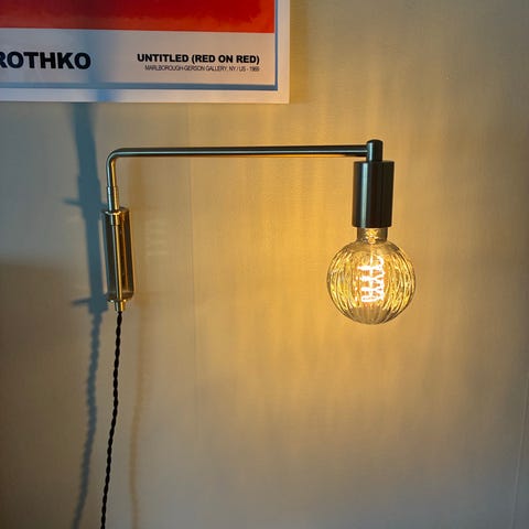 Vägglampa utsträckt 58 cm. Funktionstestad. Lampkontakt passar nutida vägguttag