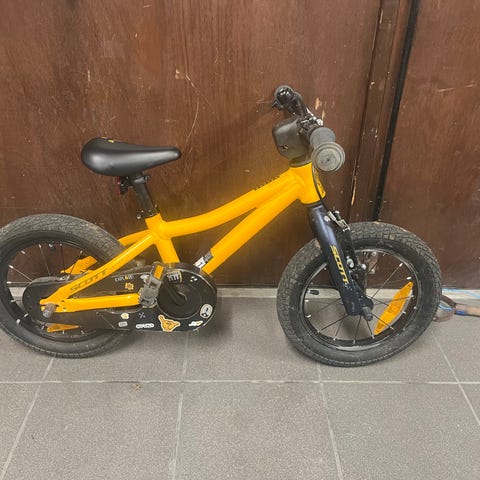 14 tum barncykel med stödhjul.