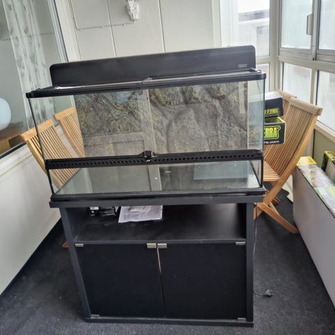 Använt men fyller sin funktion perfekt. Det finns en lite spricka i glaset(se bild) men det är inget som stör användningen. Men öppnar genom att dra upp ena glaset(se bild)
