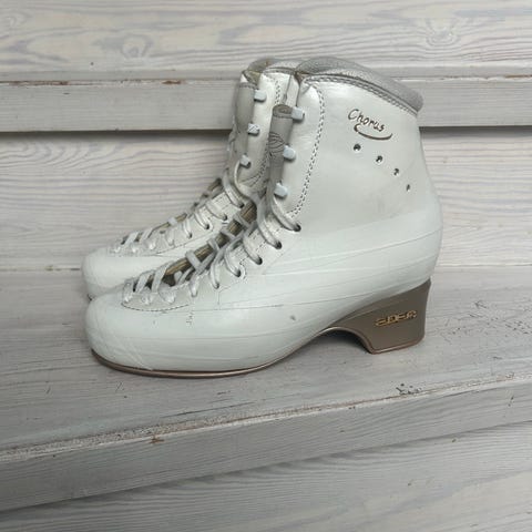 Säljer ett par Edea Motivo med tillhörande Snow whiteskena i storlek 250 allt är väldigt sparsamt använt. Skon har några märken men är knappt använda.