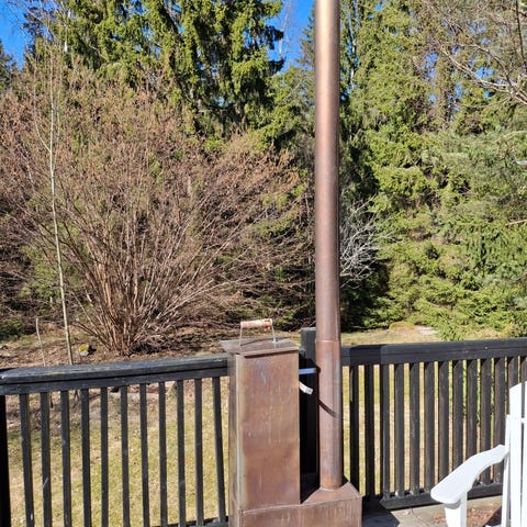 Vedeldad badtunna med yttre kamin och lock