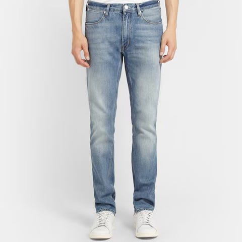 Överlag är jeansen i gott begagnat skick med normalt användningsslitage. Det finns viss blekning på läderetiketten baktill och ett litet ljust blekt område nära en söm på höger ben fram, vilket framgår av bilderna. Inga hål eller fläckar finns.