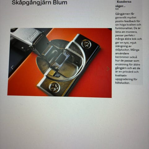 Invita Adria gångjärn i metall för skåpsdörrar.