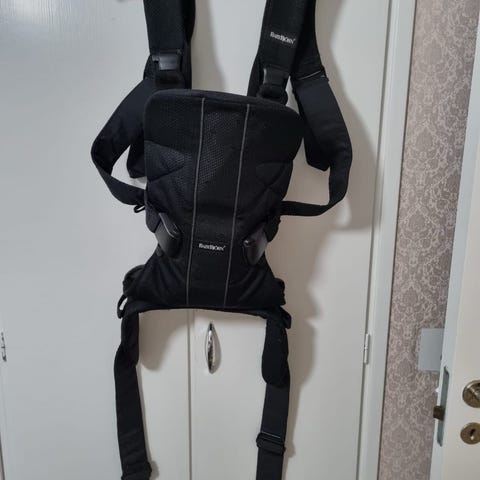 Babybjörn bärsele i modellen mini, svart. Använd till två barn, tillverkad september 2020. Tvättad parfymfritt. Enligt mig i fint begagnat skick, tecken på användning förekommer i form av lite blekare i svärtan än ny och lite ytludd.