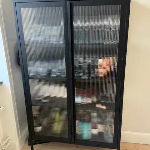 Jysk vitrinskåp glas metall trä svart