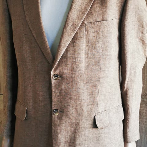 Kavaj vintage Kaleva Classic, ljusbeige svagt rutig. Made in Finland. Storlek 104E