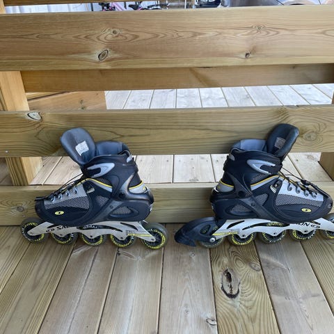 Två par rullskridskor. storlek 45,5 samt 42. Vi som har använt dem har storlek 43 och 40. 500 kr för båda alternativt 300 kr per par.
