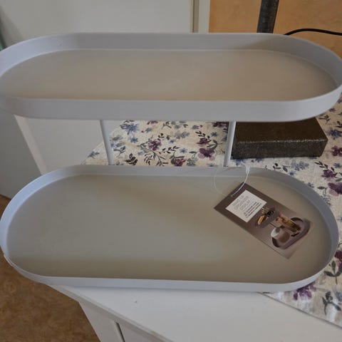 Sminkförvaring organiserare i transparent plast. Flera fack i olika storlekar för förvaring av till exempel smink, hudvårdsprodukter, parfym, penslar eller andra småsaker. Passar att ha på badrumshylla, sminkbord eller i garderob för överskådlig sortering av produkter.