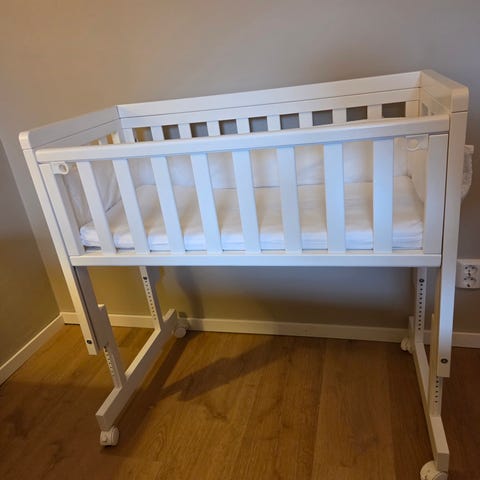 Säljer en bedside crib i nyskick! Aldrig använd då dottern hellre sover i vår säng.