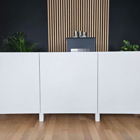 Bestå skänk vit med glas dörrar! Helt nytt! Så i väldigt fint skick! Säljes till högstbjudande!