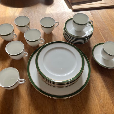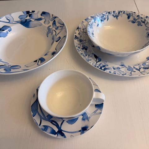 serveringsfat och skål i vitt porslin från Table top stories, köpt från Cervera. Setet består av: