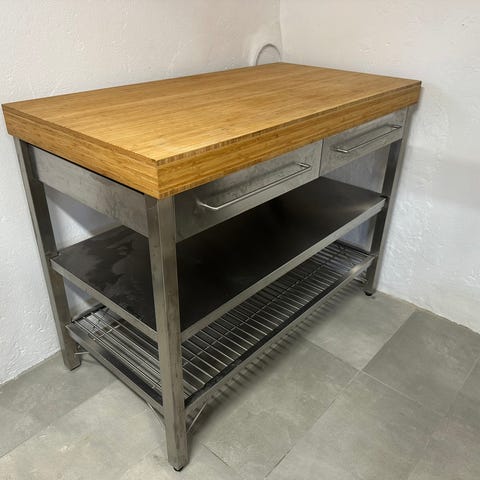 ikea Tornviken Köksö med träskiva och hyllplan i metall vit
