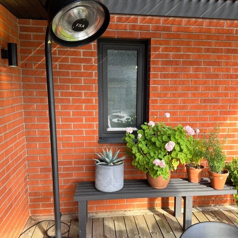 Två fullt fungerande terrassvärmare. Den ena har en liten spricka i plasten men inget som påverkar funktionen.