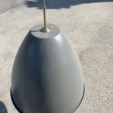 Taklampa formgiven av Claus Bonderup. Lampan har en svart utsida och vit insida med slät, skålformad skärm. Avsedd för montering i tak med kabel och takfäste. Passar som allmänbelysning i exempelvis vardagsrum, kök eller hall. Ljuskälla med vanlig sockel (se bild) används, ej inkluderad om inte annat anges i annonsen. Lampan är komplett med takdos.