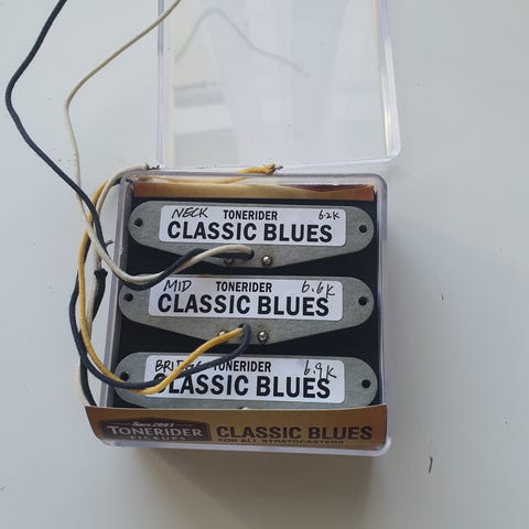 Single coil-mikarna är från en Fender Jazz Bass Standard från tidigt 90-tal. Låter bra och funkar bra. Samma bredd på hals- och stallmik.