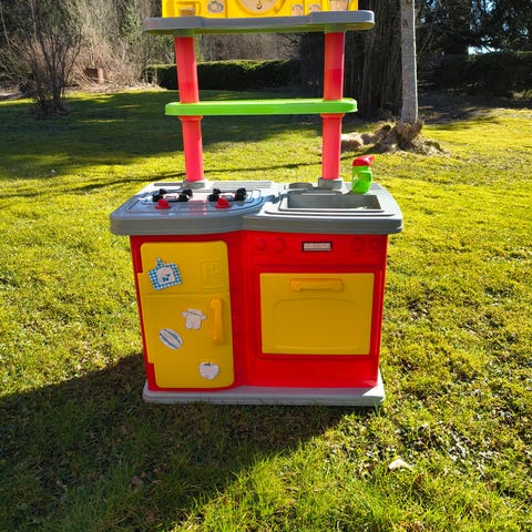 Leksakssspis med ca 30 tillbehör, bord och 2 stolar.
