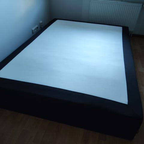 IKEA sängstomme med bäddmadrass i svart utförande. Ben i metall ingår.