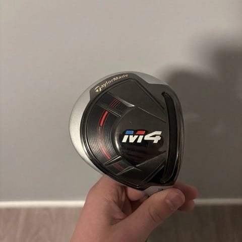 TaylorMade M4 driver. Huvudet har en kombination av svart och silver med detaljer i rött och blått. Klubbhuvudet