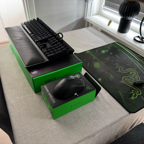Gamingtangentbord, gamingmus och musmatta.