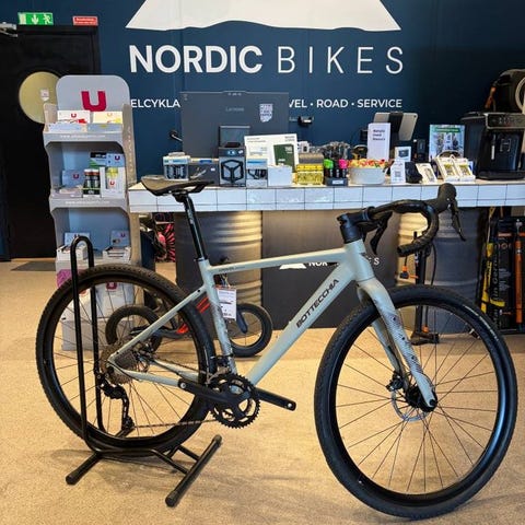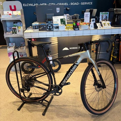 Hjulen består av slitstarka WTB ST i25-fälgar med Shimano-nav, utrustade med WTB Riddler 45c gravel-däck. Cannondale 3 flared-styret ger bekväma och gravelanpassade handpositioner för långa och varierade turer.