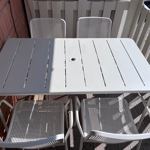 Mycket bra skick. Finns små rost-märken då stolarna har stått ute över vintern. Se bild.