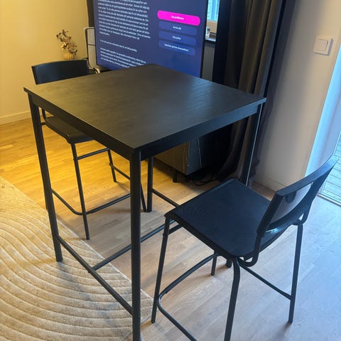 Ok skick, stabilt och bra. En stol i sämre skick men går att använda utan problem då det inte syns.