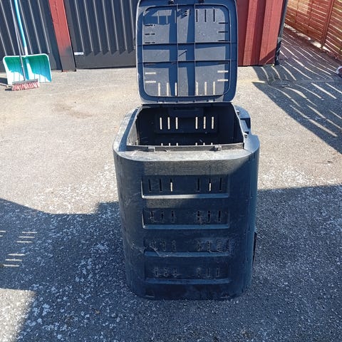 Två stycken begagnade varmkompost, Greenline, locket på den ena har gått itu i två delar, påverkar inte användandet. 800 kr styck eller båda för 1500 kr.