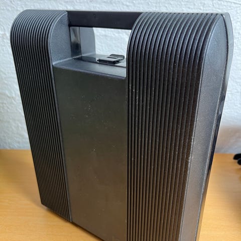 Retro Plastförvaring för 20 st kassett band i orange och svart.