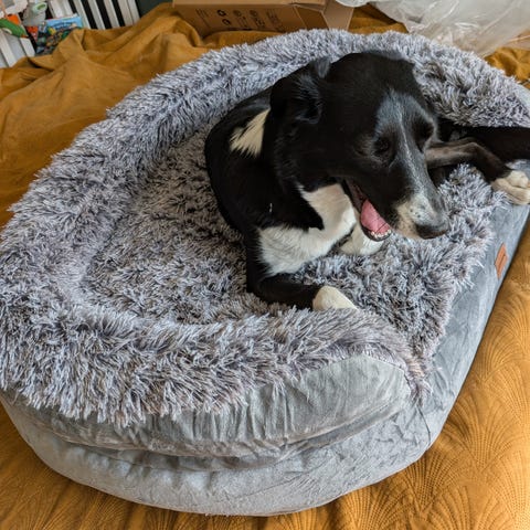 En vecka använda o tvättade! hundsäng Doris (50x13) 150 kr och Trixie magväska upp t 5 kg 150 kr.