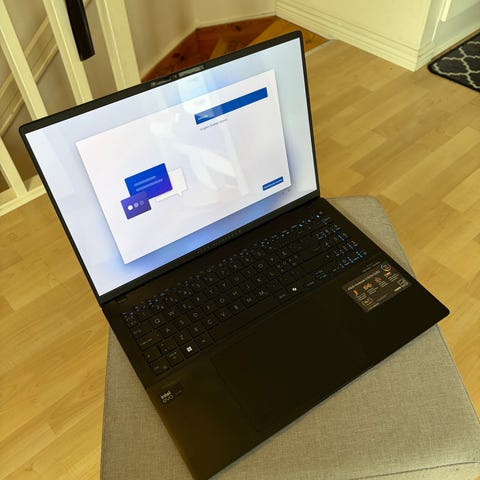 Oöppnad ASUS VivoBook S16 med OLED-skärm.